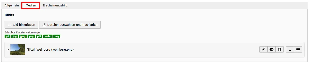 Im Reiter “Medien” wählen Sie ein Bild in ausreichender Größe aus (Abb. 4) und speichern ab - fertig ist das Hero-Bild.
